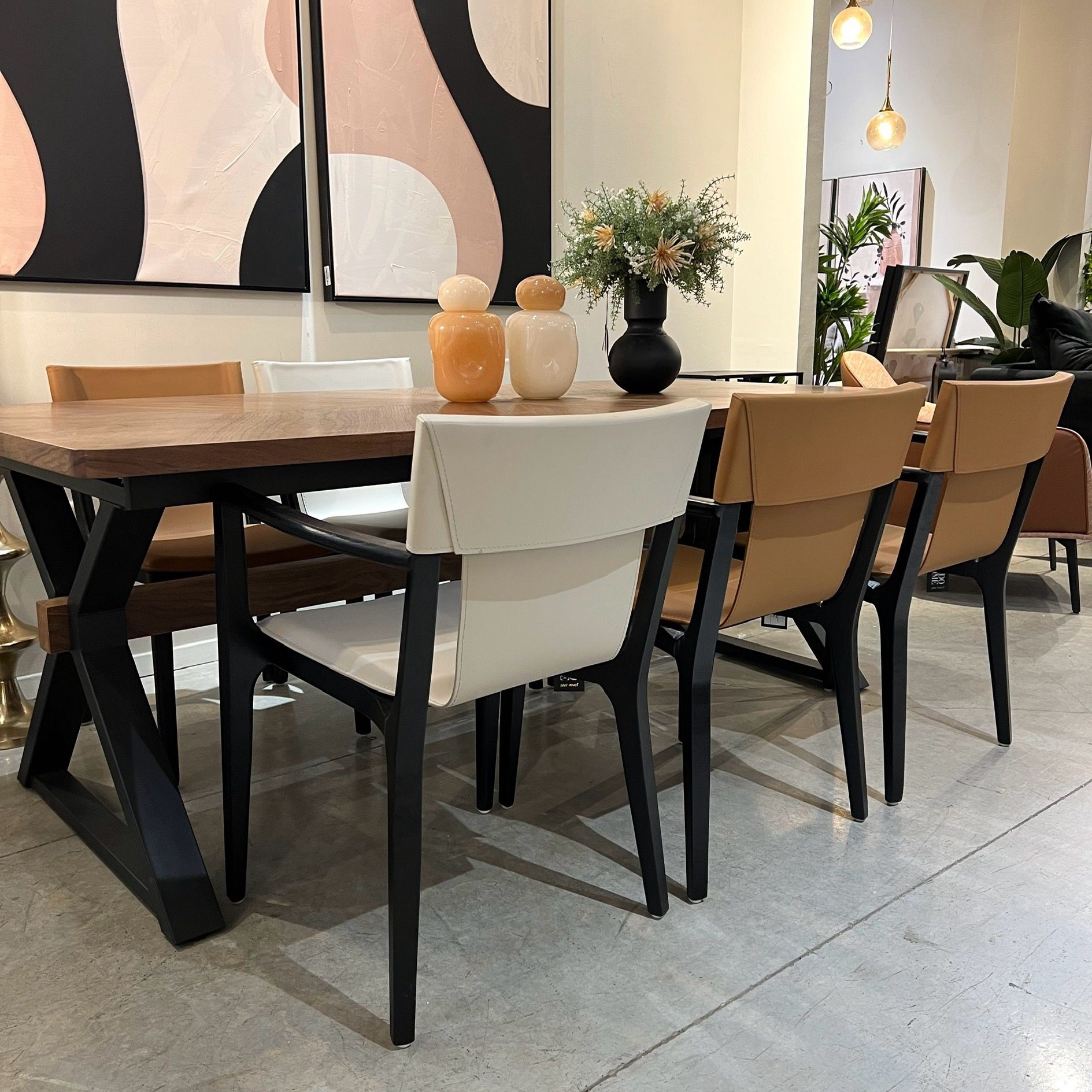 כורסא כיסא מיוחדת דגם ברטין בעיצוב מודרני, אלגנטי ועכשווי בשילוב עור תעשייתי בגוון חום כאמל ורגל עץ שחורה מדויקת.