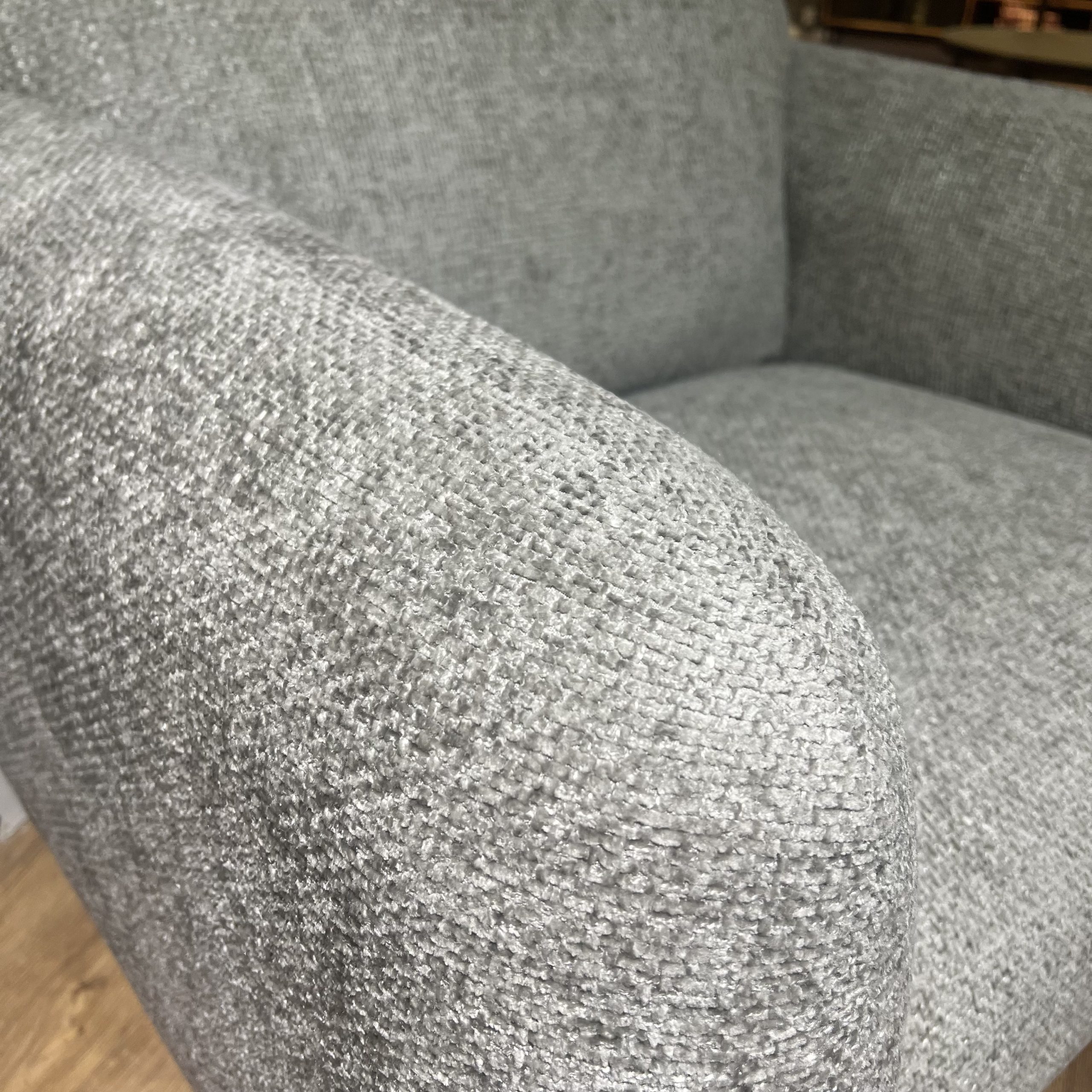 חומרים: גוף עץ| ספוג גמיש| בד אריג אפור| רגלי ברזל
