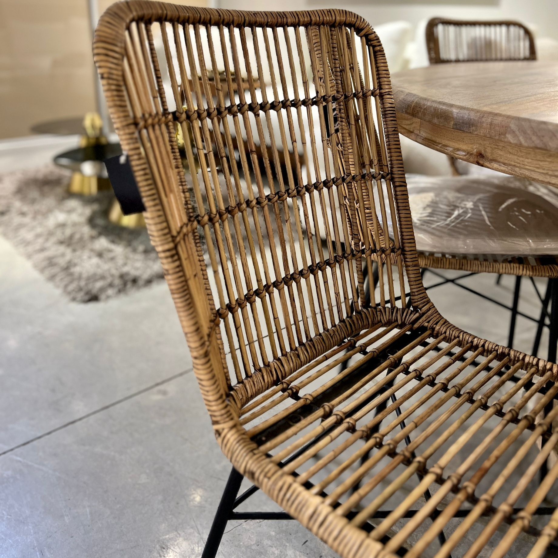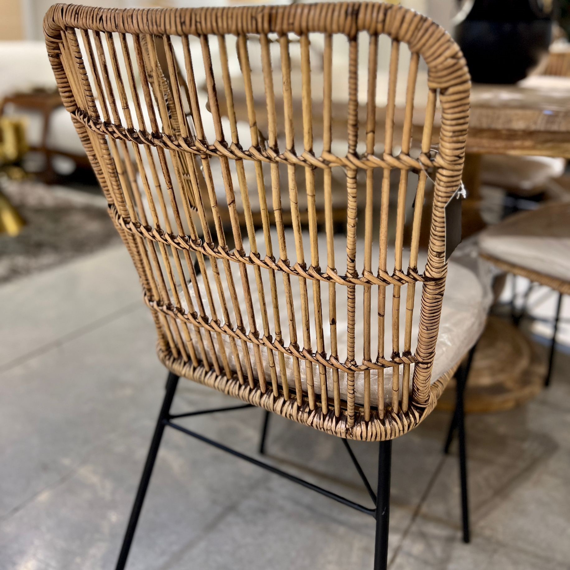 כיסא פינת אוכל דגם קאי בעיצוב נורדי בעבודת יד עשוי ראטן טבעי ורגל ברזל שחורה מגיע עם ריפוד ישיבה, נוח מאוד.