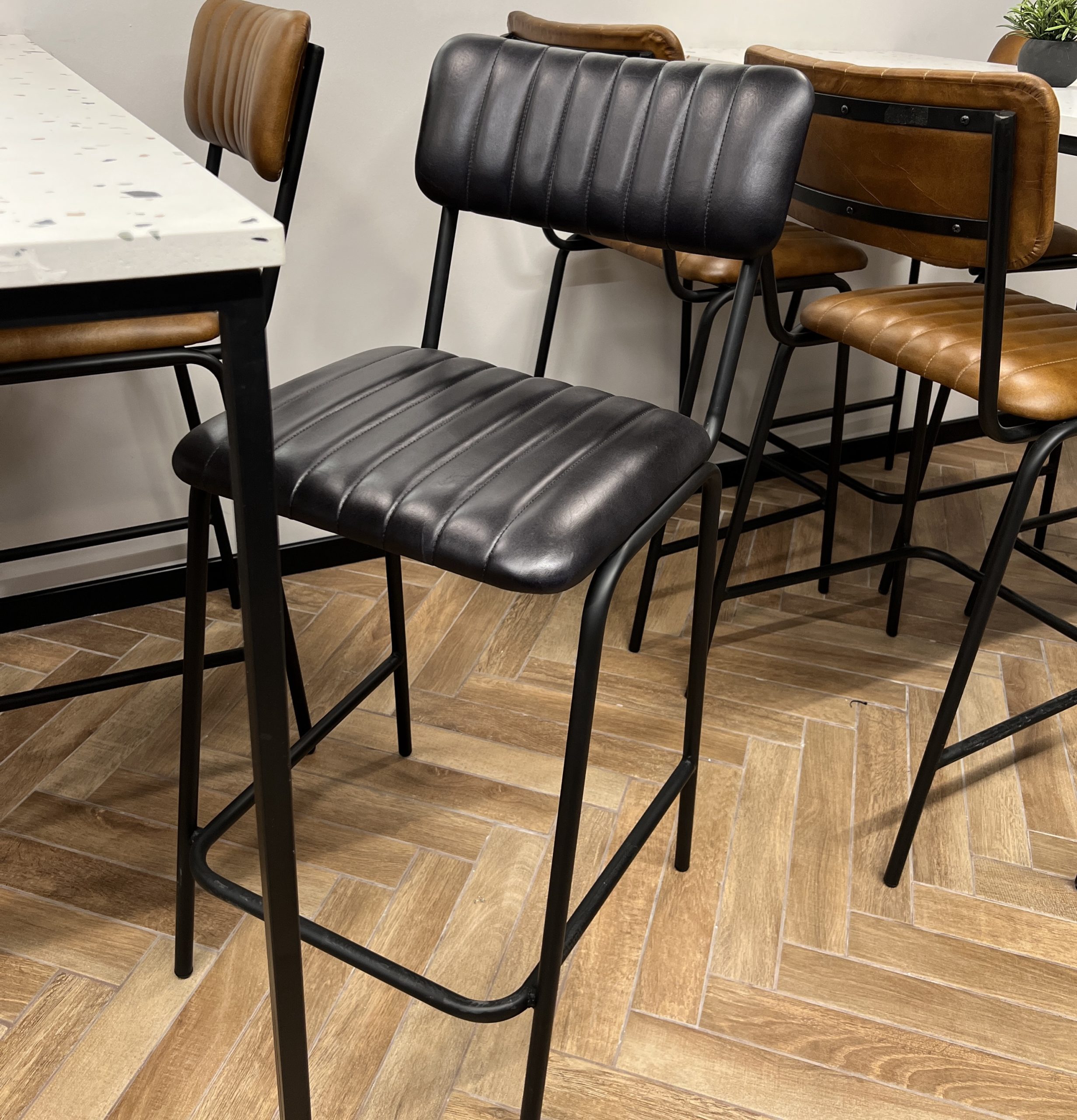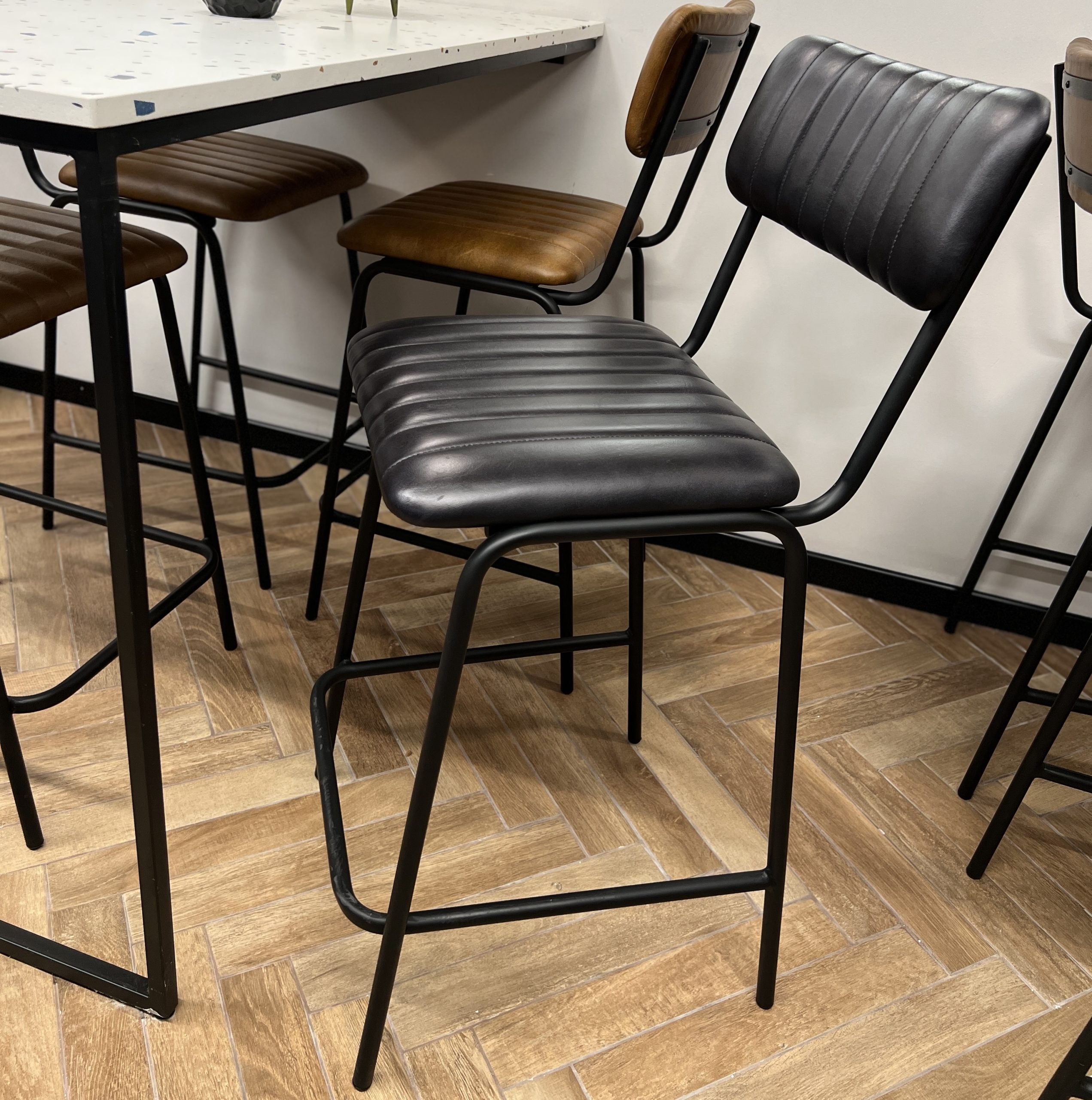 כסא בר דגם אוכף עם משענת ומושב עור בופאלו בעיצוב יוקרתי ומיוחד.