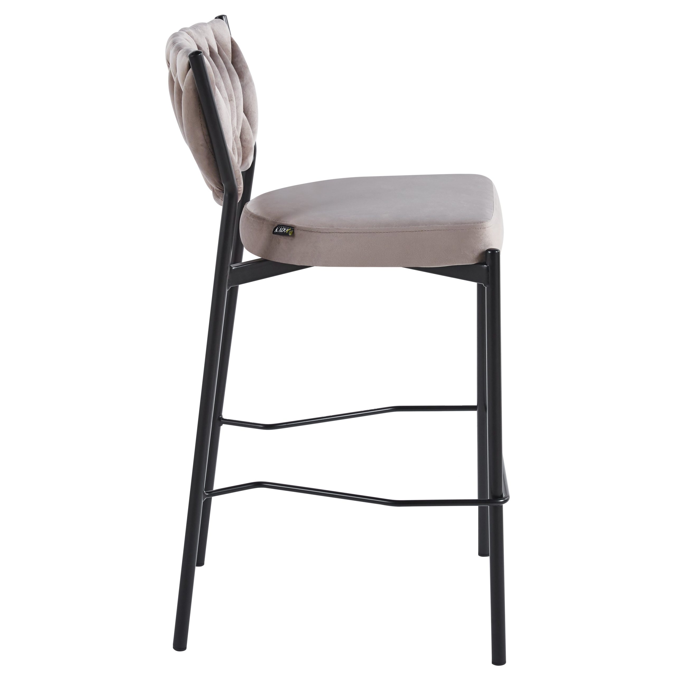 כסא בר דגם מרילין קלוע רגל שחורה קטיפה בז.