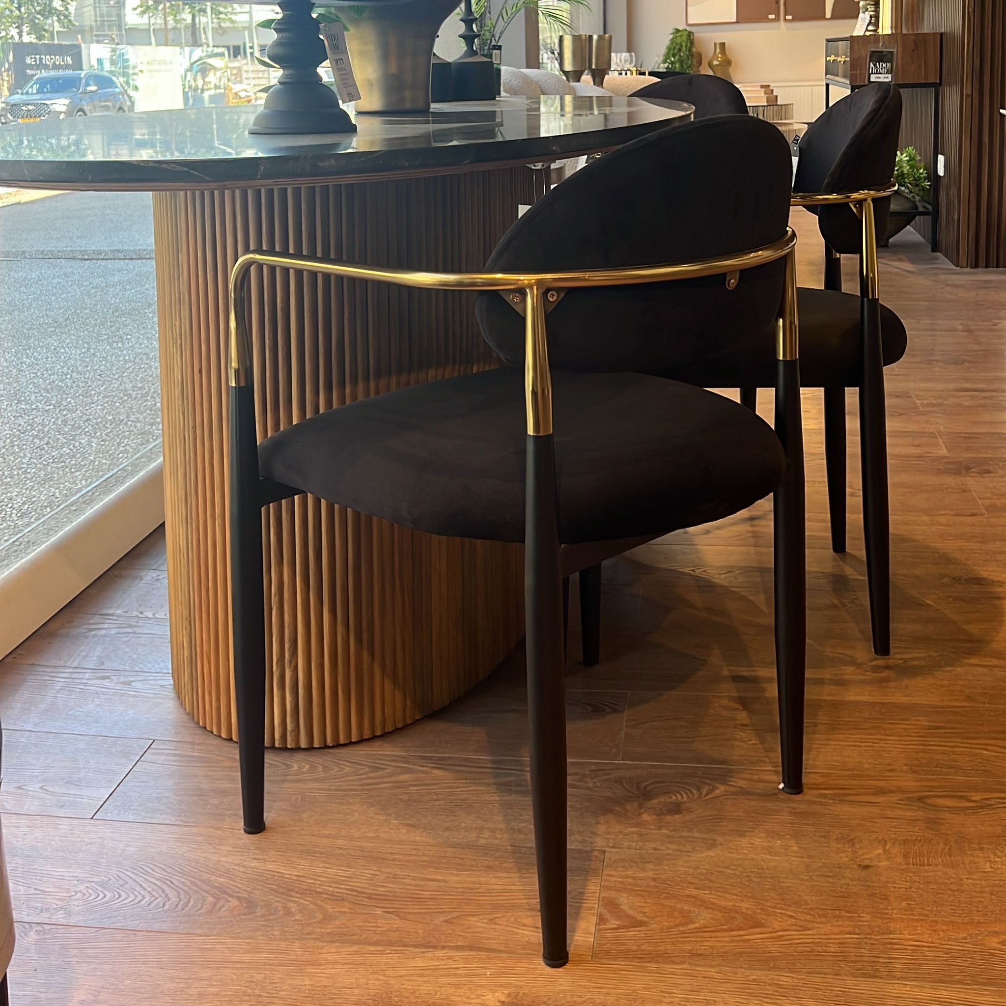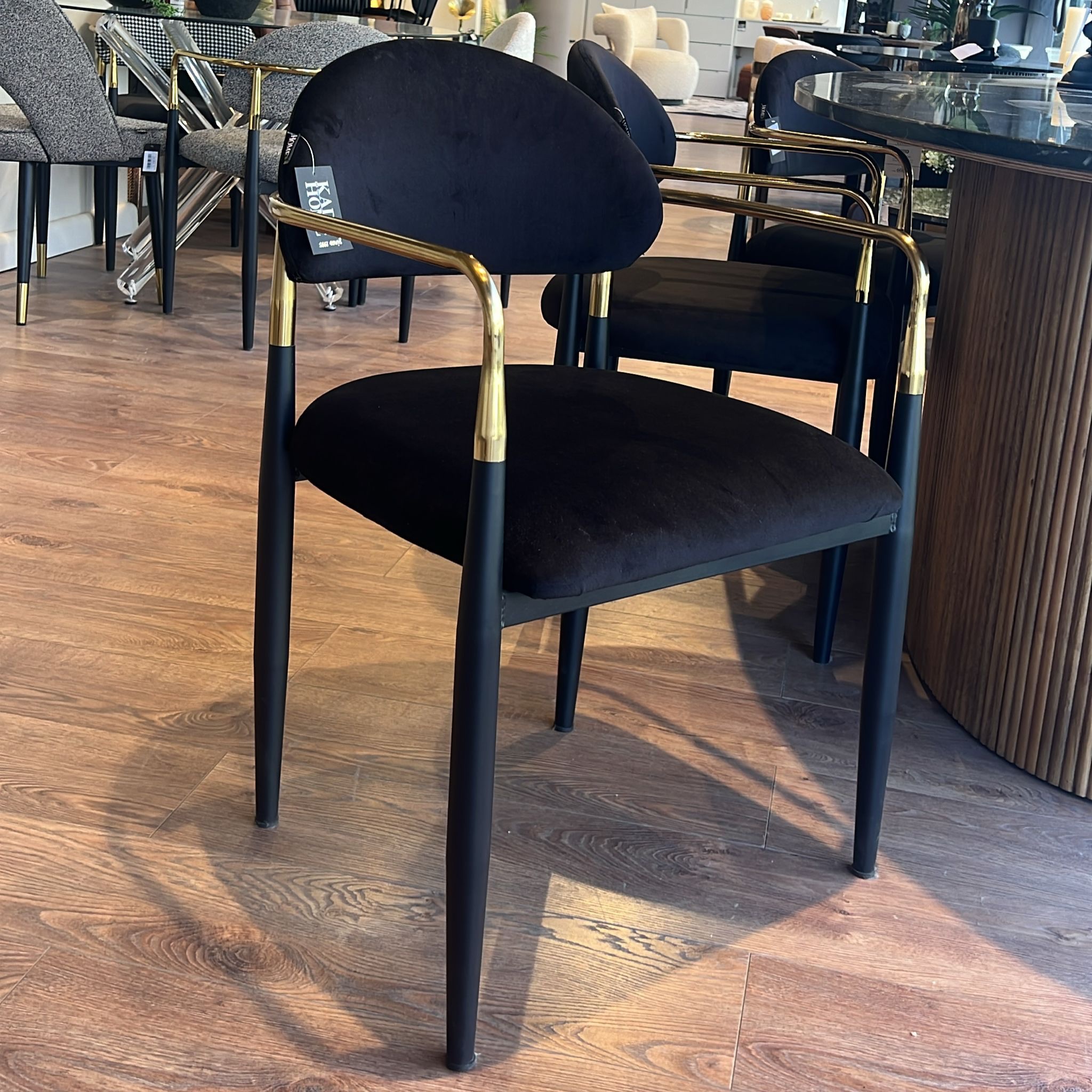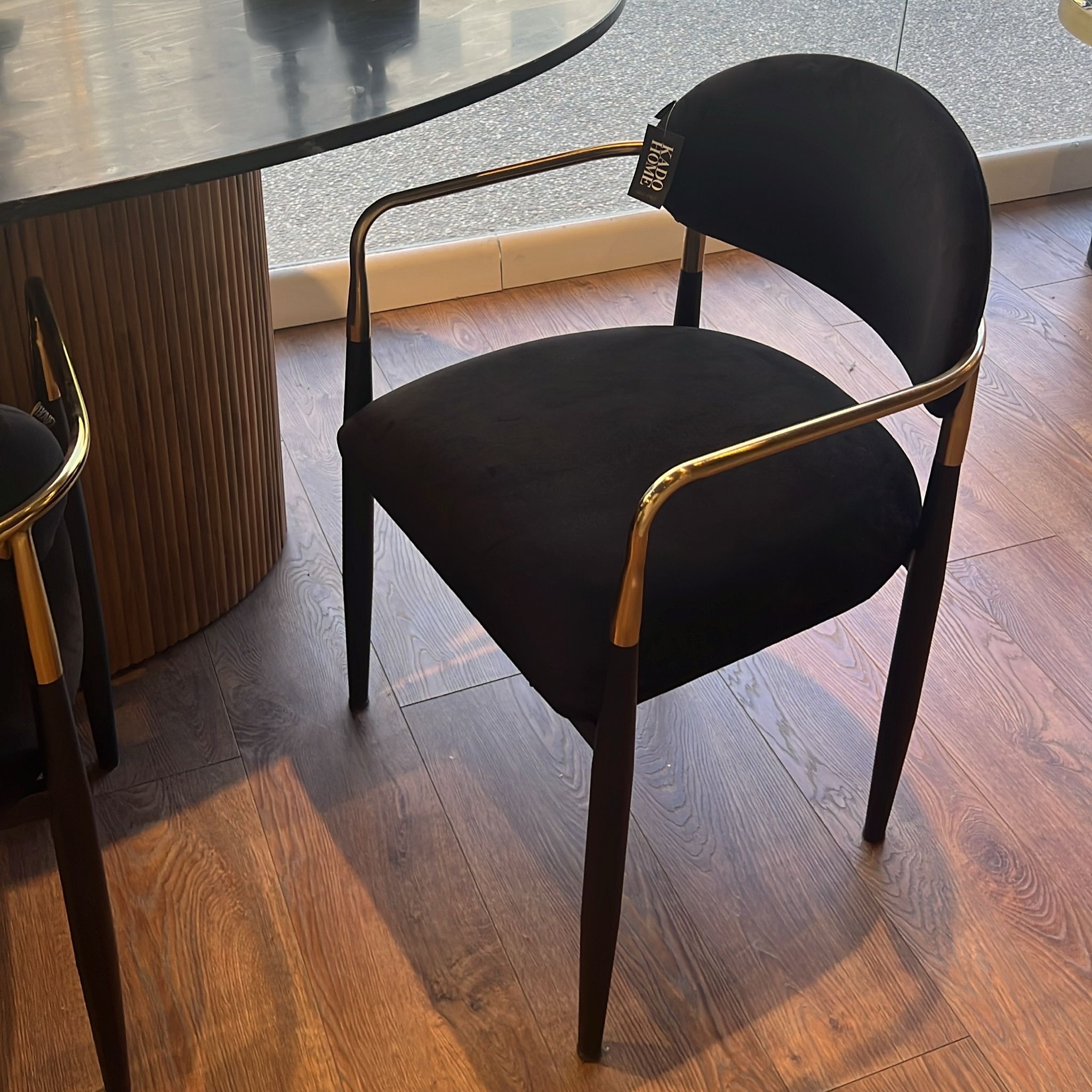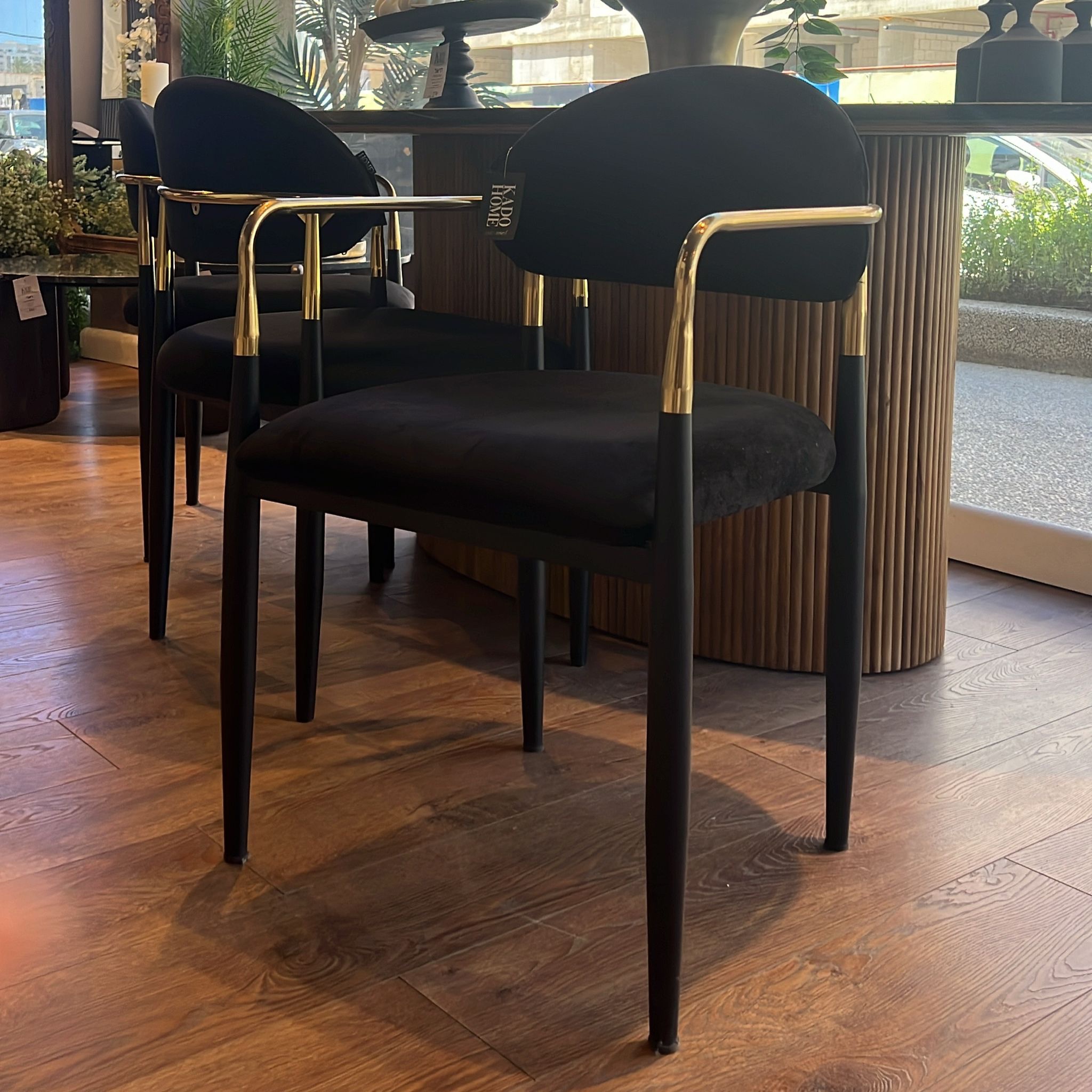 כסא פינת אוכל ידיות זהב רגליים שחור קטיפה שחור דגם מודרן קימי