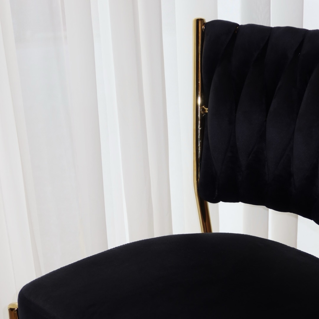 כסא דגם מרילין קלוע רגל זהב קטיפה שחורה. ייבוא קאדו הום.