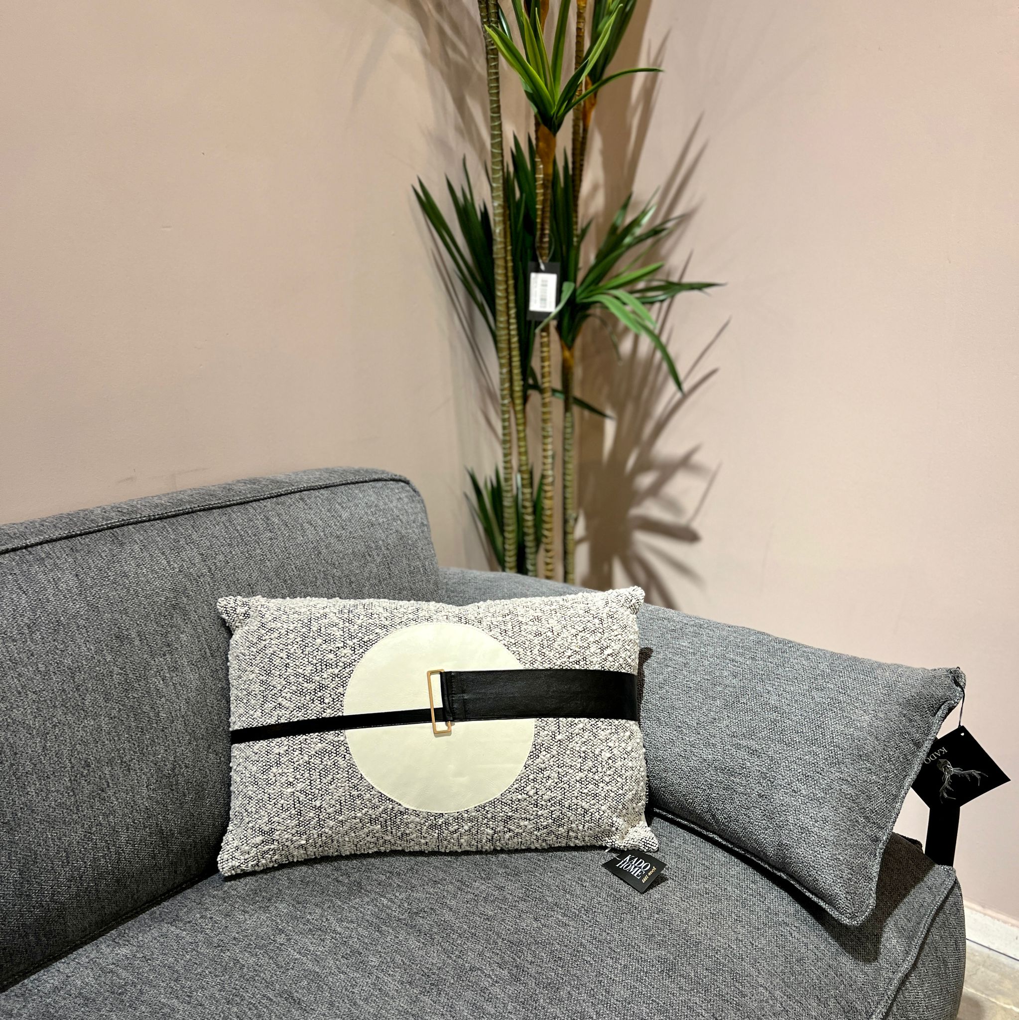 כרית מלבן אפור עיגול שמנת רצועה שחורה מידות 35/50ס"מ.