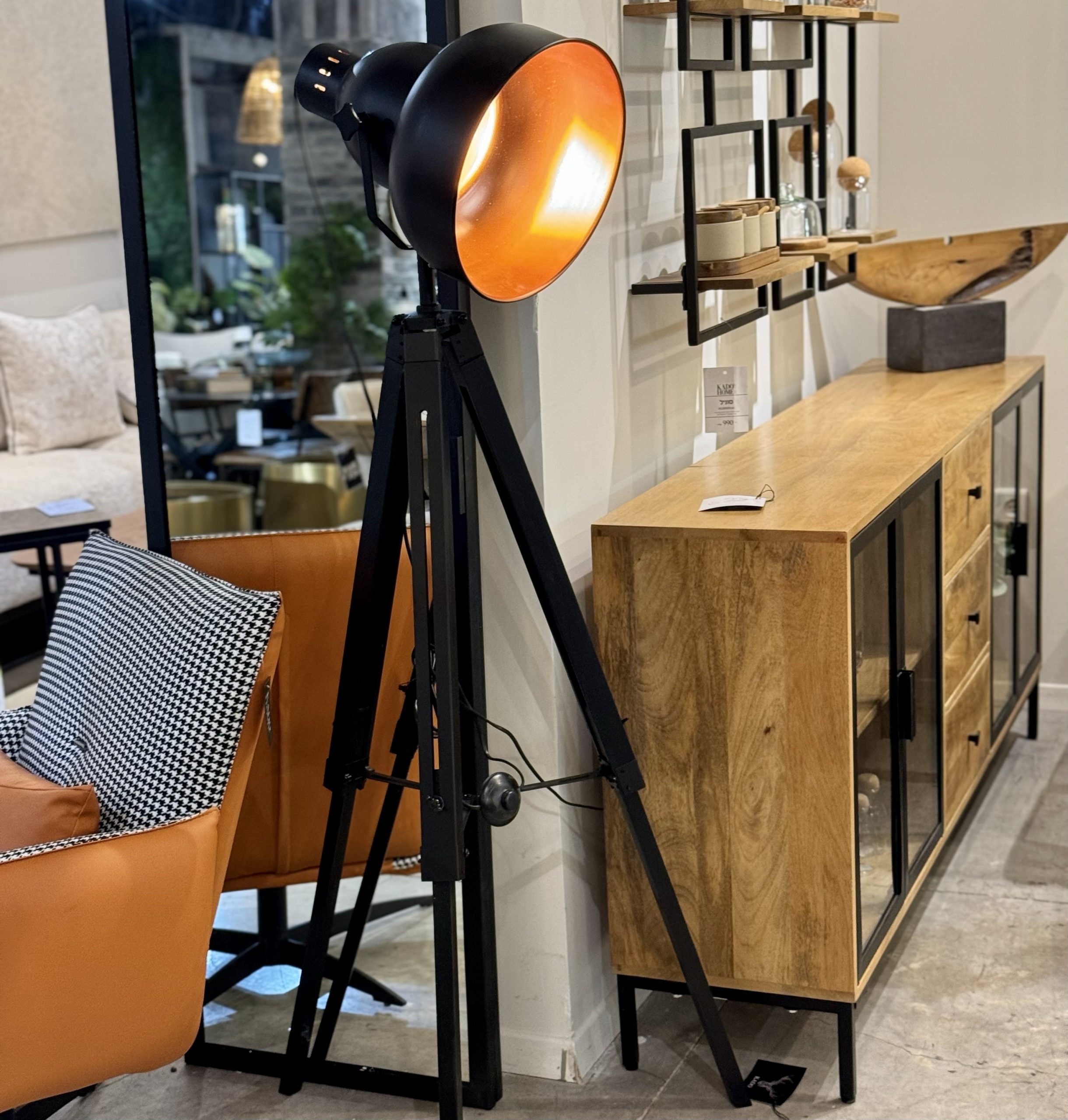 מנורה רצפה שחורה אהיל ברזל שחור דגם אליס