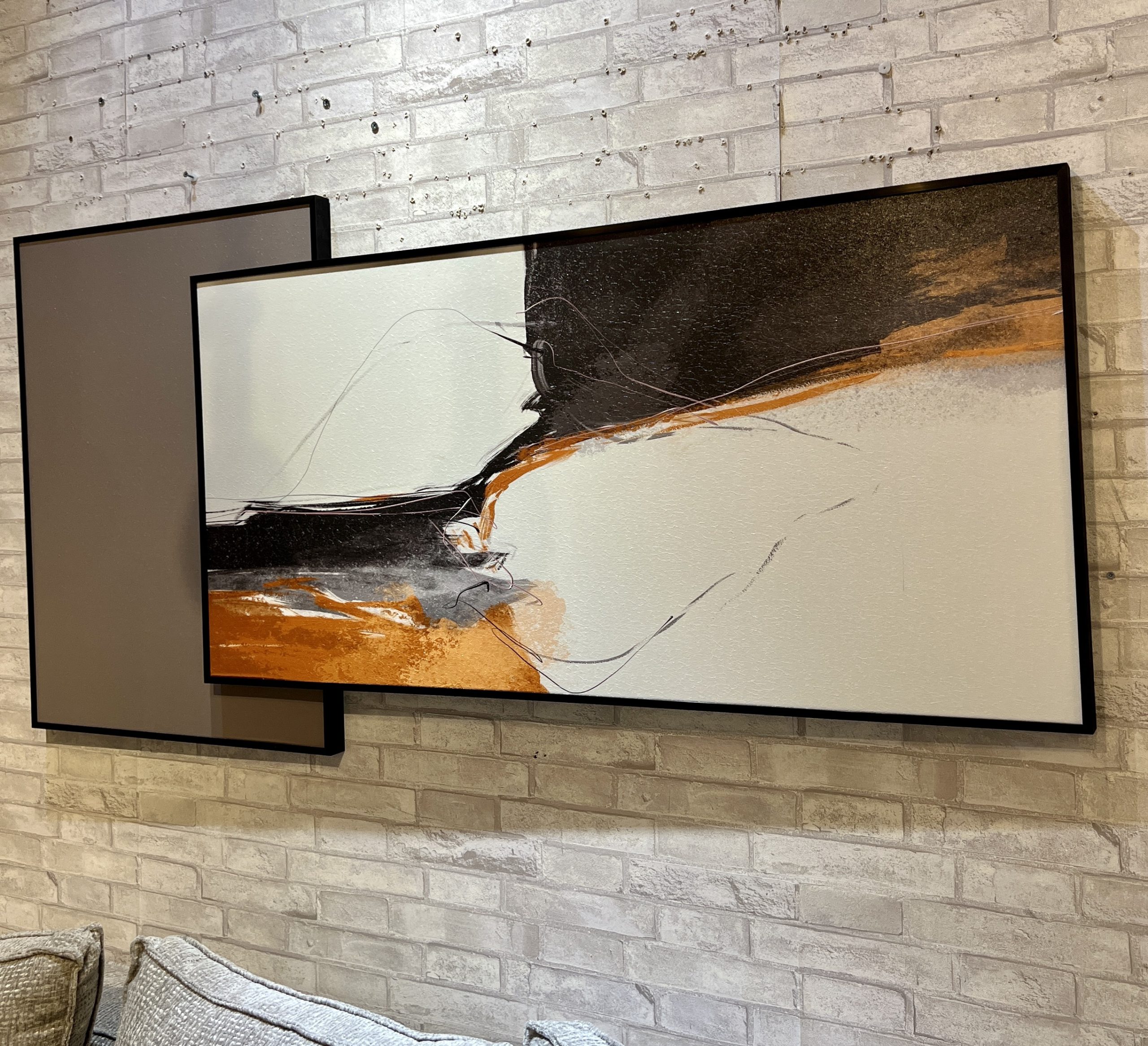 סט תמונה+ תמונה ציור עבודת יד רקע לבן עם נגיעה שחור וכתום דגם איקו