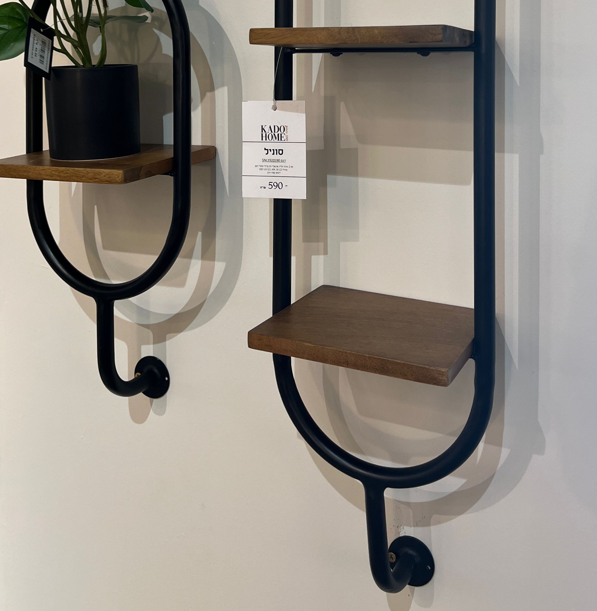 סט 2 מדפי תליה אובאלי עץ ברזל שחור דגם סוניל מידות: 105/18/23 ס"מ 69/18/23 ס"מ יבוא קאדו הום